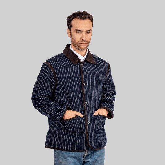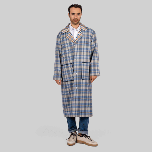 Handwoven Plaid Jacket with Navy Corduroy Collar