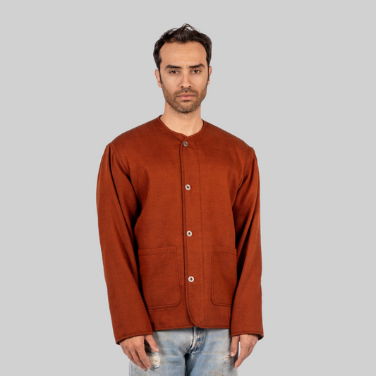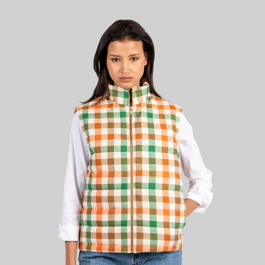Handwoven Plaid Jacket with Brown Corduroy Collar