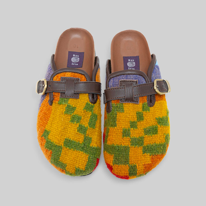 This signature pair of clogs is made by hand at our Marrakech atelier from a vintage, 50-to-100-year-old handwoven Kilim rug. A classic, easy-to-wear shape meets rich, timeworn textiles—designed for everyday wear and built to last. Made for the journey, they’re effortless to pack and always a conversation starter.