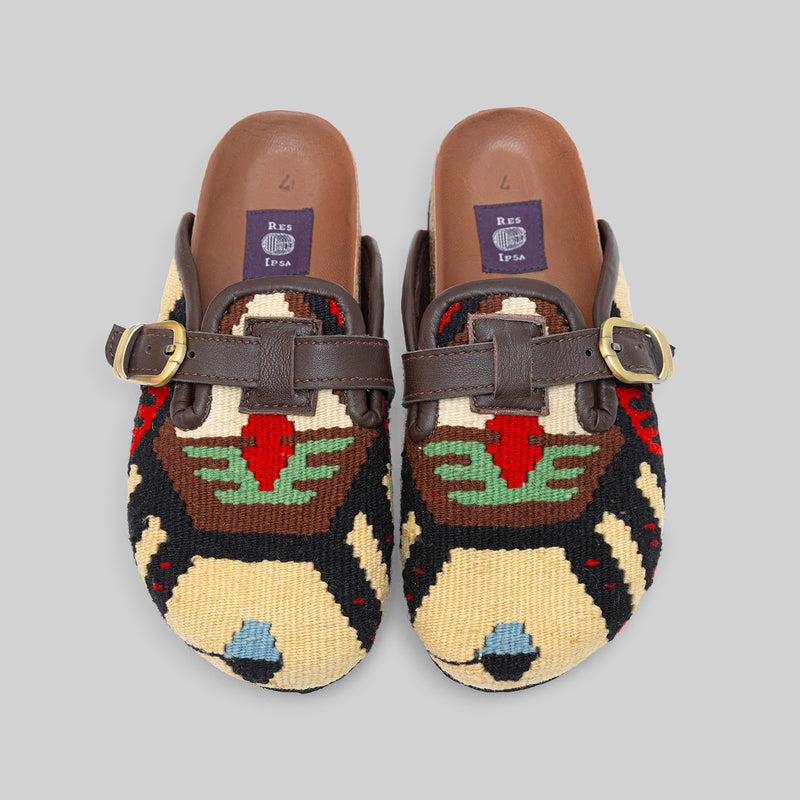 This signature pair of clogs is made by hand at our Marrakech atelier from a vintage, 50-to-100-year-old handwoven Kilim rug. A classic, easy-to-wear shape meets rich, timeworn textiles—designed for everyday wear and built to last. Made for the journey, they’re effortless to pack and always a conversation starter.